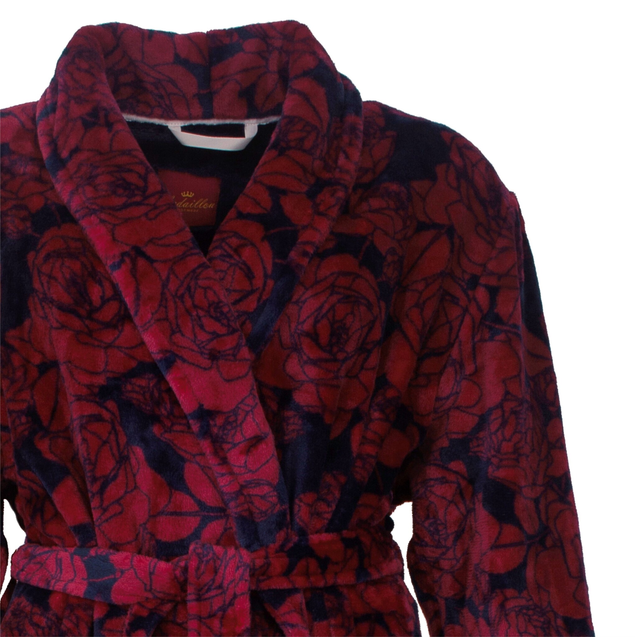 MEBRD25001A Medaillon dames Fleece Badjas Ochtendjas Blauw Rood.