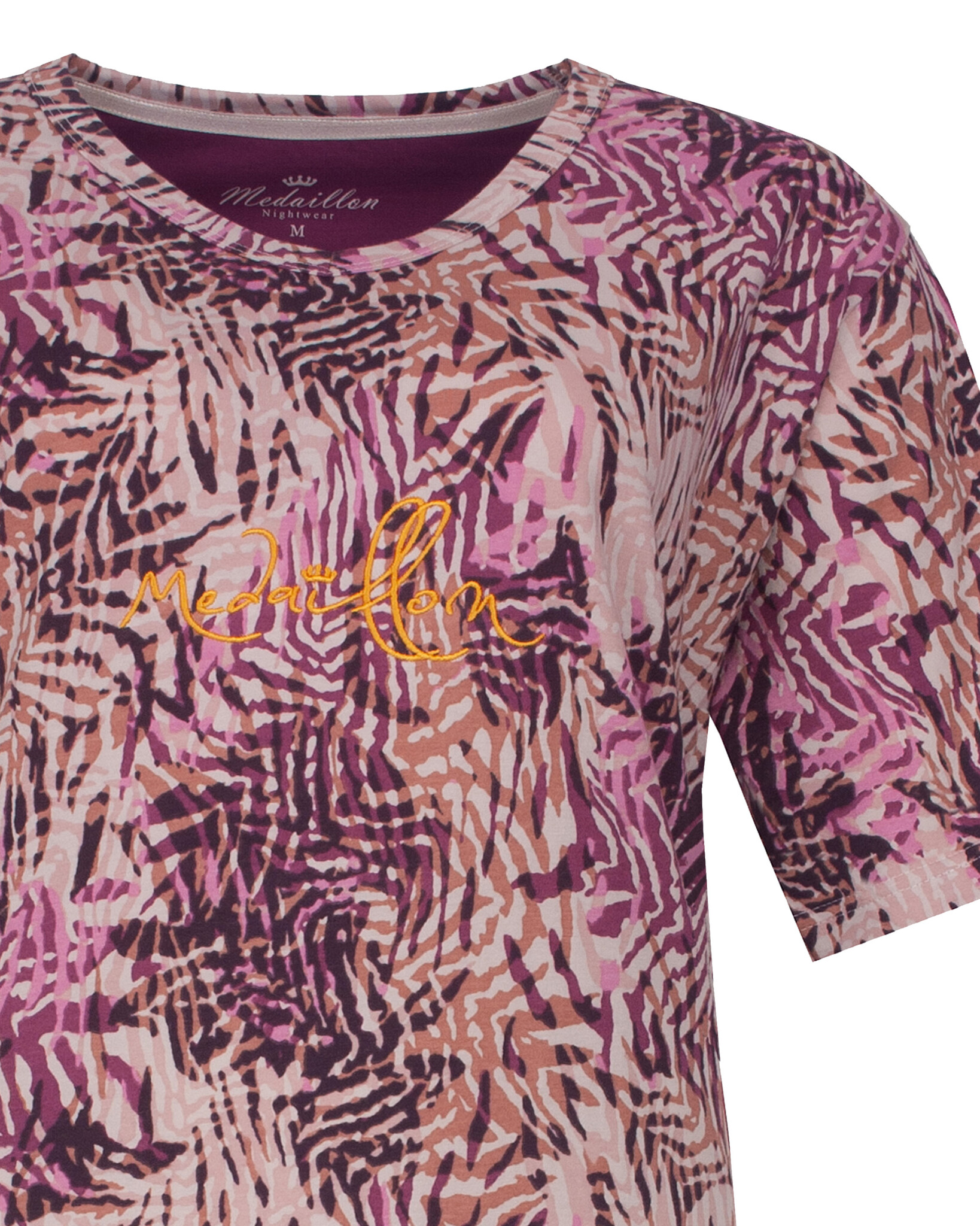 Medaillon is een verfijnd damesmerk dat sinds 1994 klassieke home- en sleepwear creëert voor vrouwen die waarde hechten aan luxe stoffen en elegante details, en die kiezen voor een tijdloze, vrouwelijke stijl. Medaillon combineert comfort en verfijning, met chique en warme kleuren. De shaped fit zorgt voor een elegante pasvorm die zowel stijl als comfort biedt, ideaal voor vrouwen die zichzelf willen verwennen met kwalitatieve en stijlvolle nachtkleding.