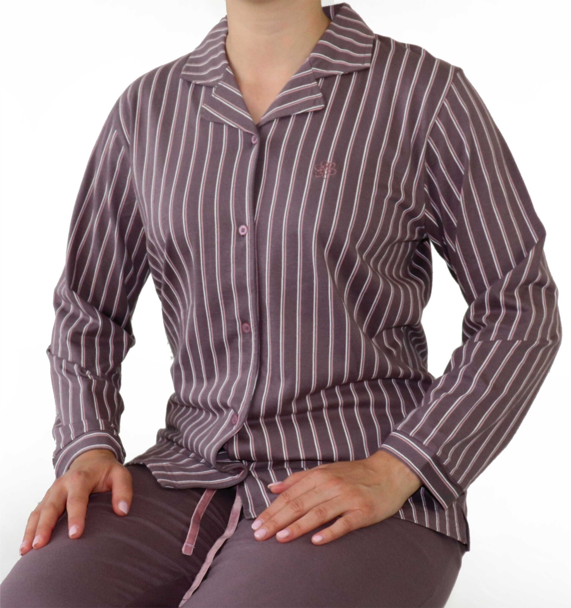 MEPYD25010A Medaillon dames Doorknoop Pyjama Bruin.