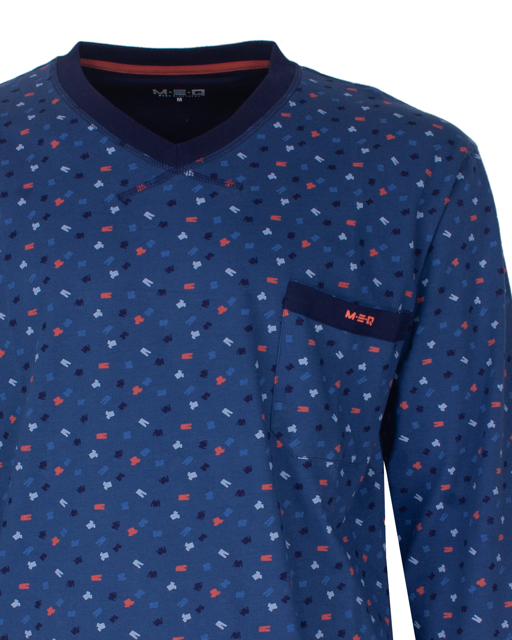 MEPYH16001A MEQ Heren Pyjama V-hals Blauw.