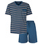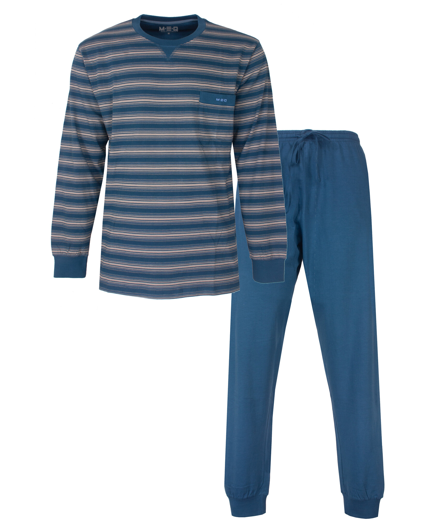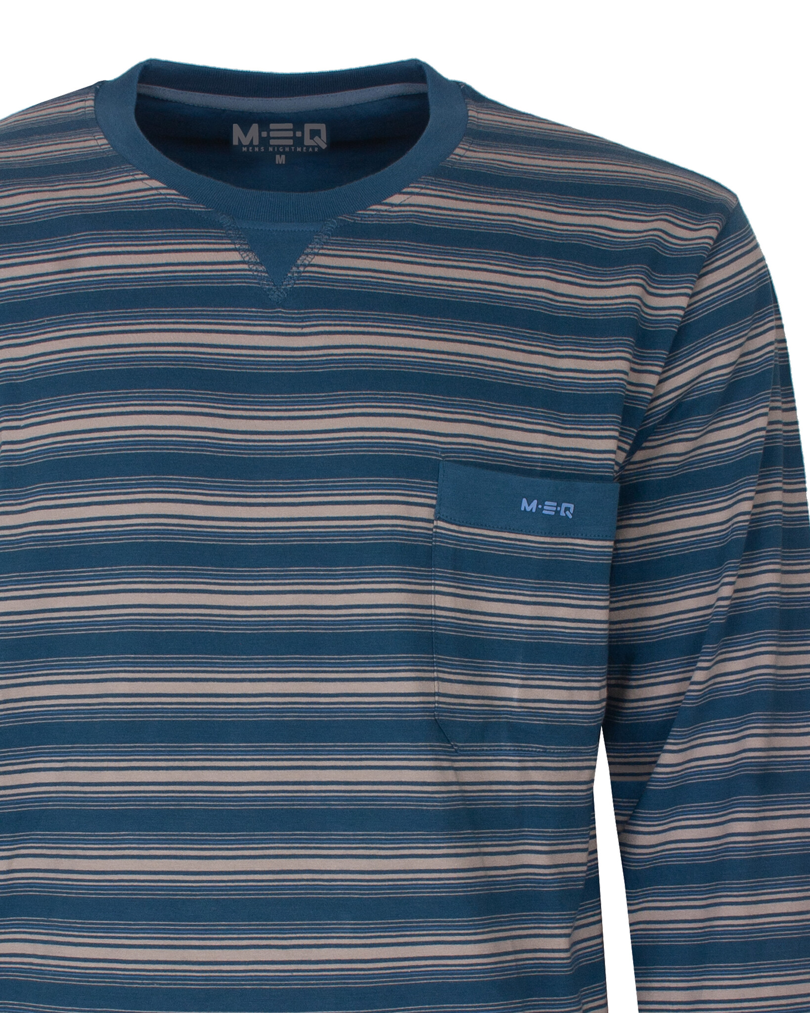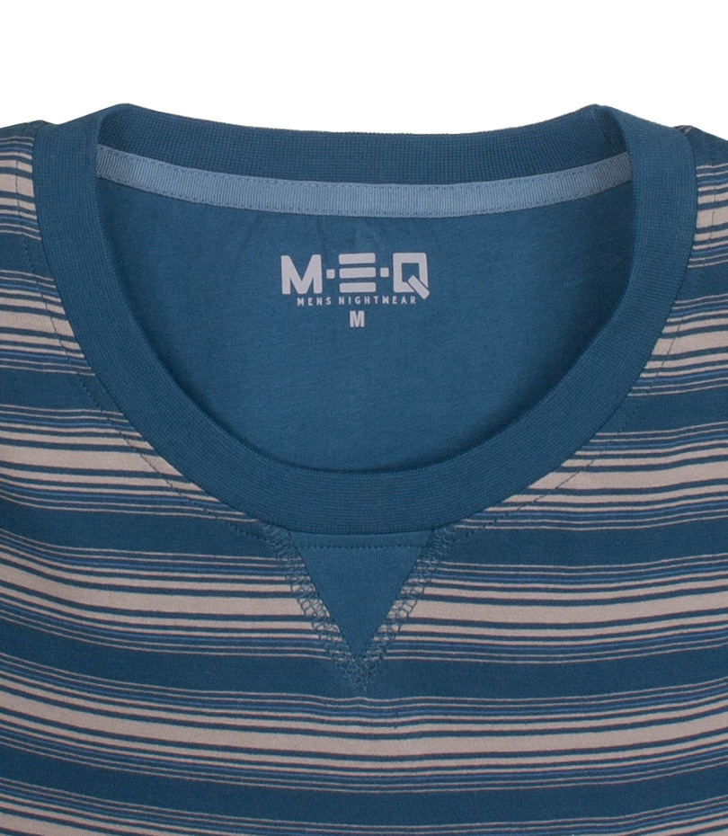 MEPYH16009A MEQ Heren Pyjama Gestreept Ronde Hals Petrol Blauw.