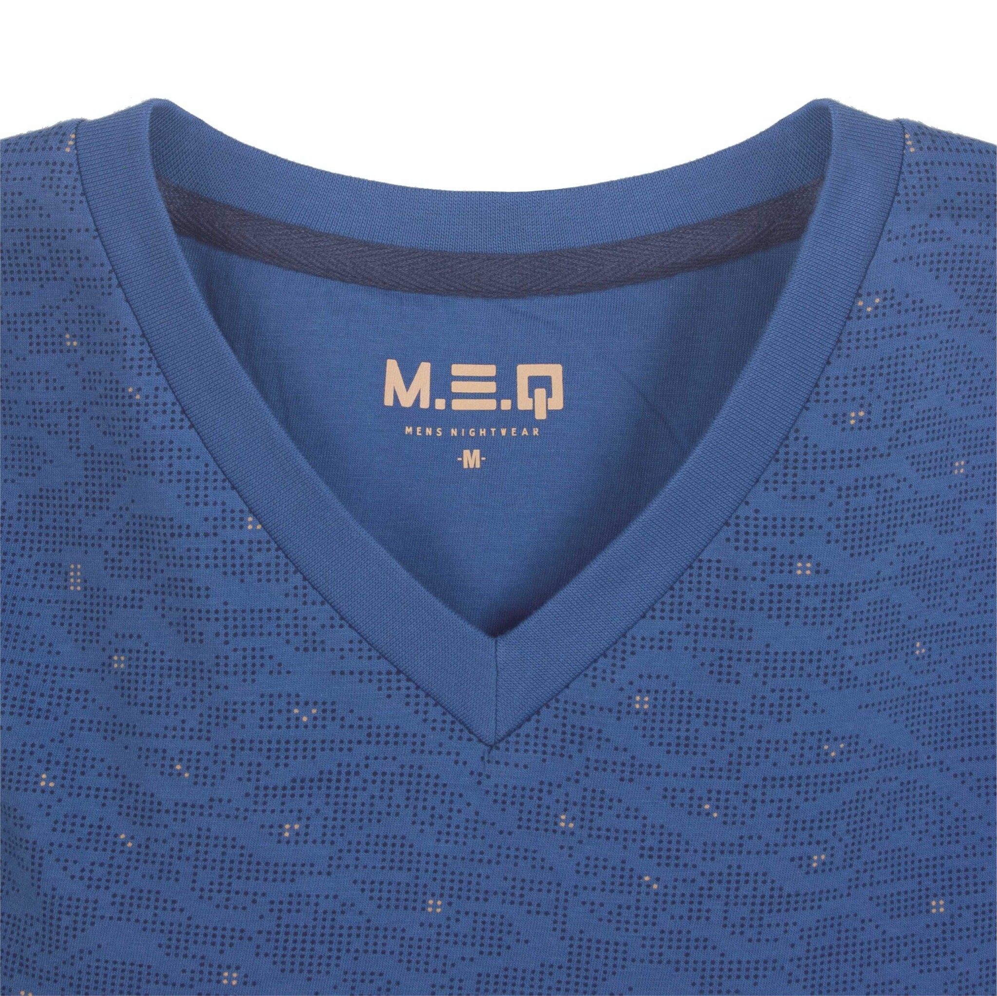 MEPYH25001A MEQ Heren Pyjama V-hals Lange Mouw Blauw.