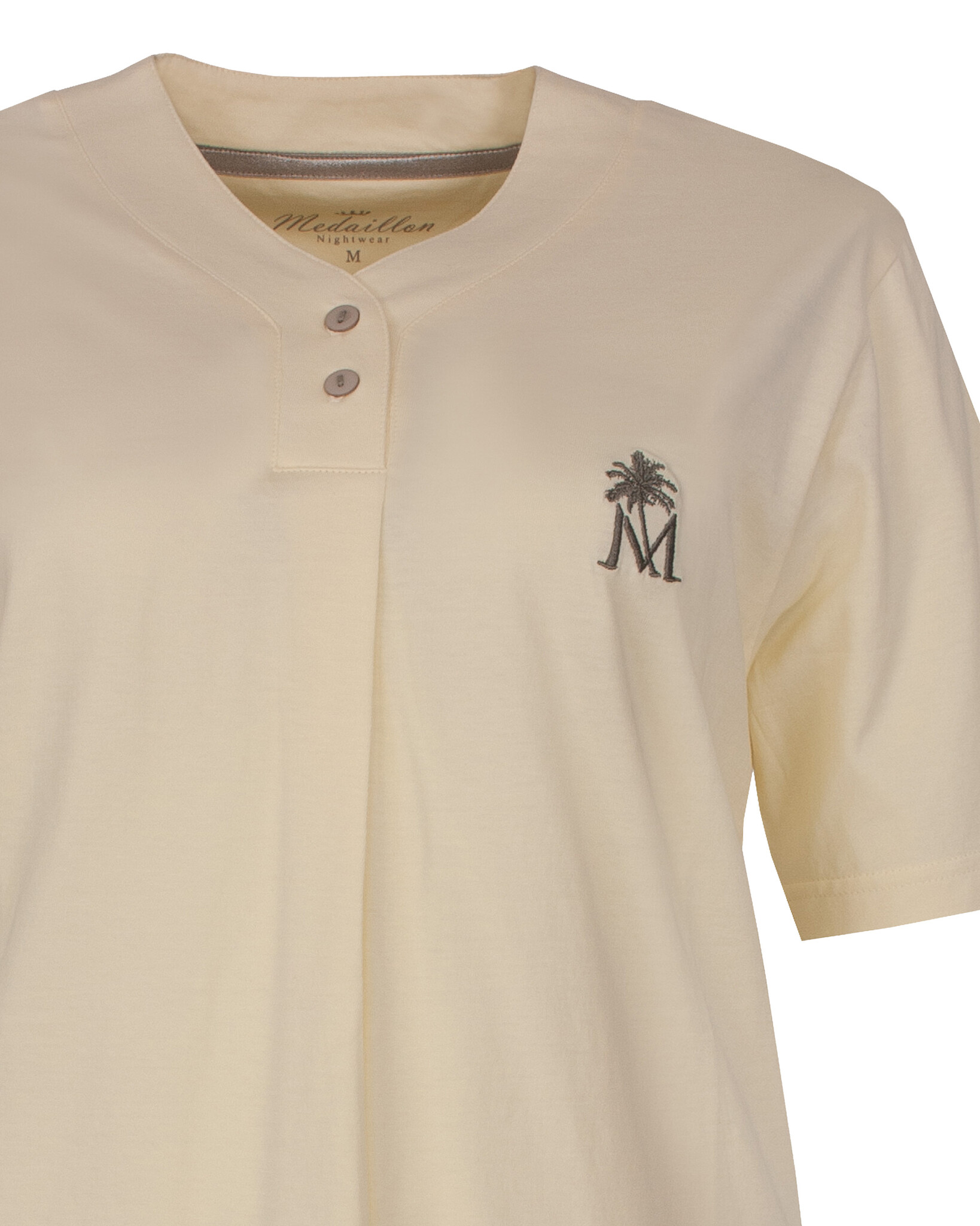Medaillon is een verfijnd damesmerk dat sinds 1994 klassieke home- en sleepwear creëert voor vrouwen die waarde hechten aan luxe stoffen en elegante details, en die kiezen voor een tijdloze, vrouwelijke stijl. Medaillon combineert comfort en verfijning, met chique en warme kleuren. De shaped fit zorgt voor een elegante pasvorm die zowel stijl als comfort biedt, ideaal voor vrouwen die zichzelf willen verwennen met kwalitatieve en stijlvolle nachtkleding.