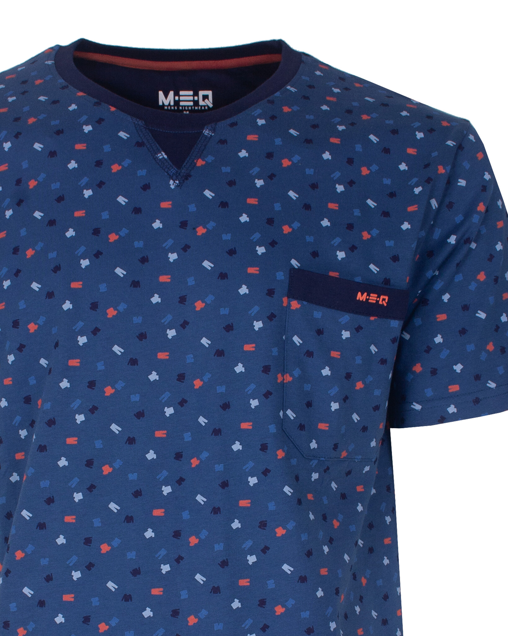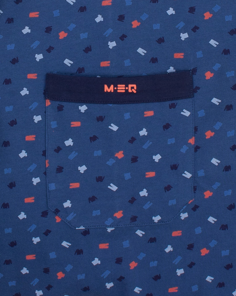 MESAH16001A MEQ Heren Shortama Geprint Dessin Ronde Hals Blauw.