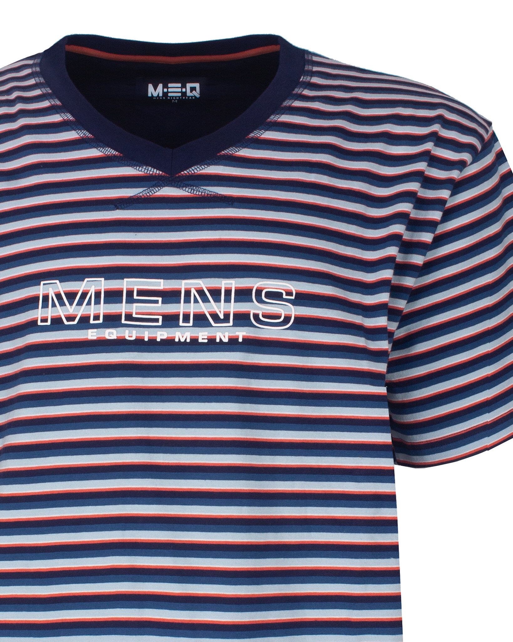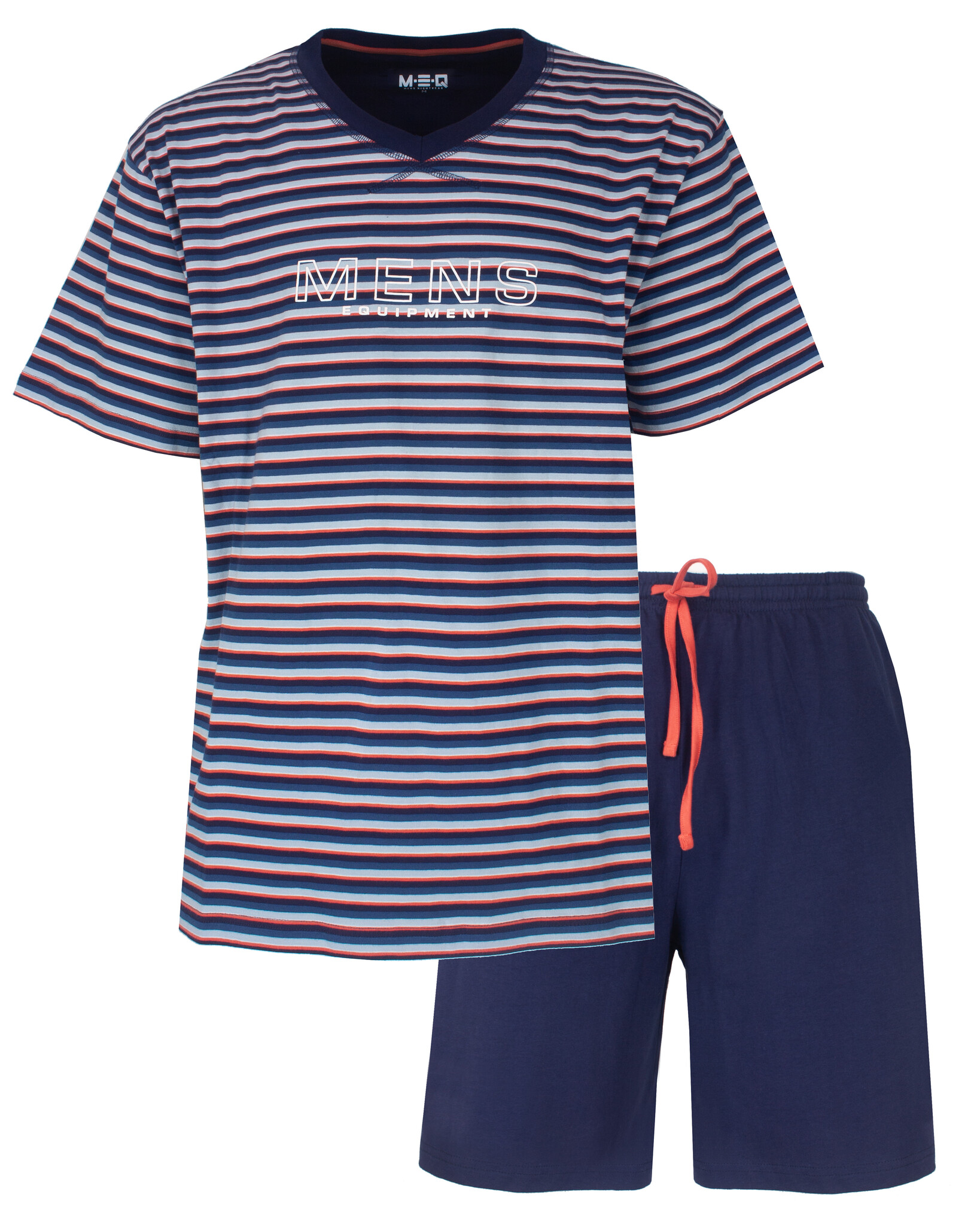 MESAH16002A MEQ Heren Shortama Gestreept V-hals Blauw.