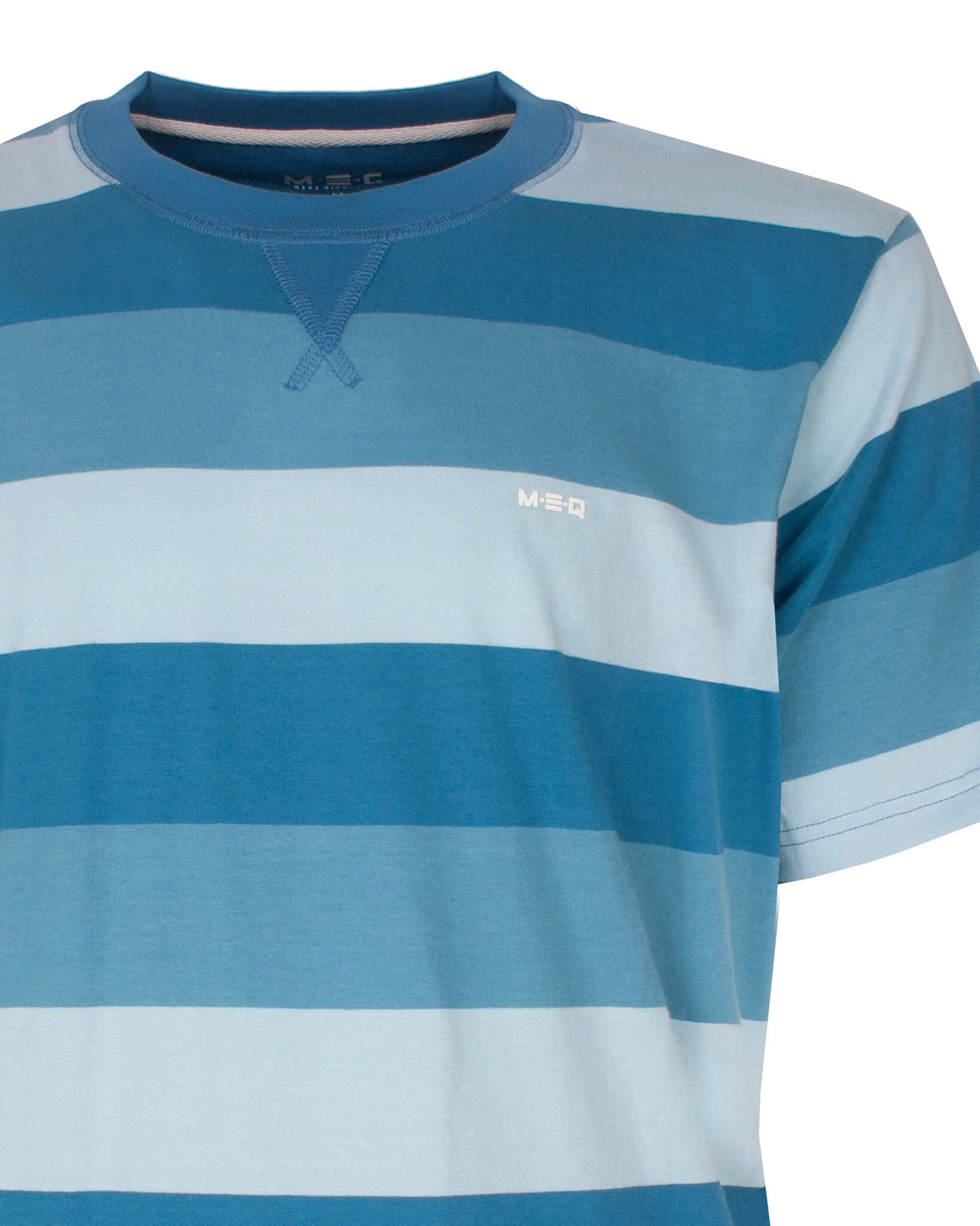 MESAH16004A MEQ Heren Shortama Gestreept Ronde Hals Aqua Blauw.