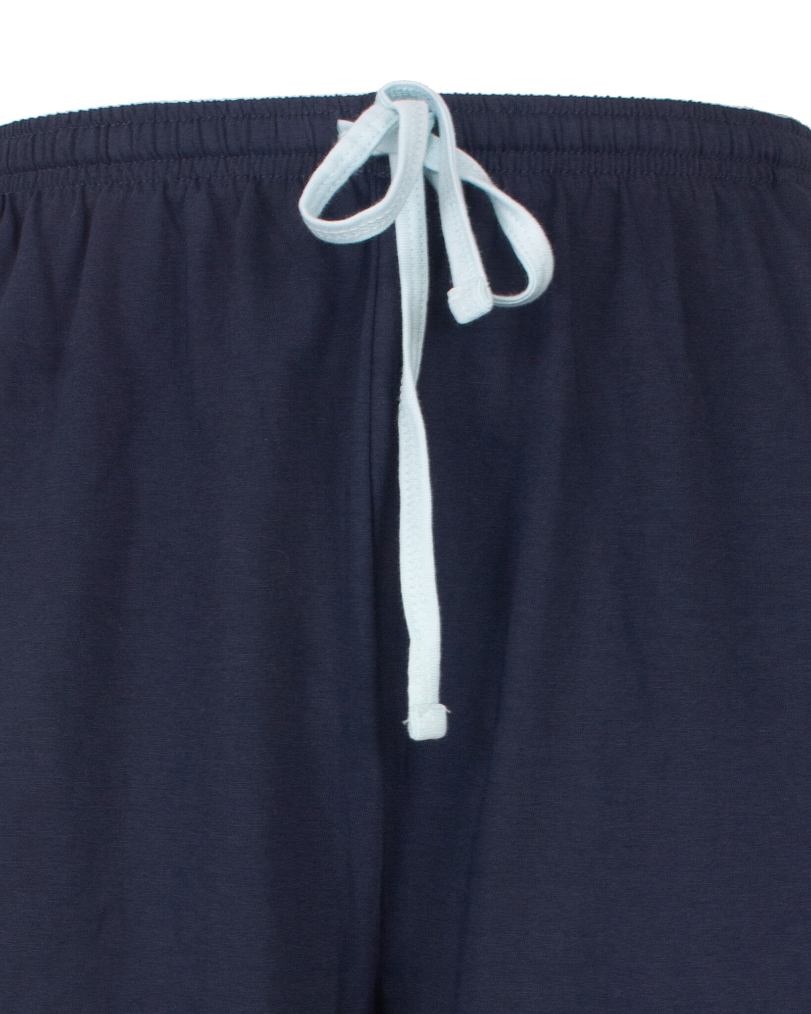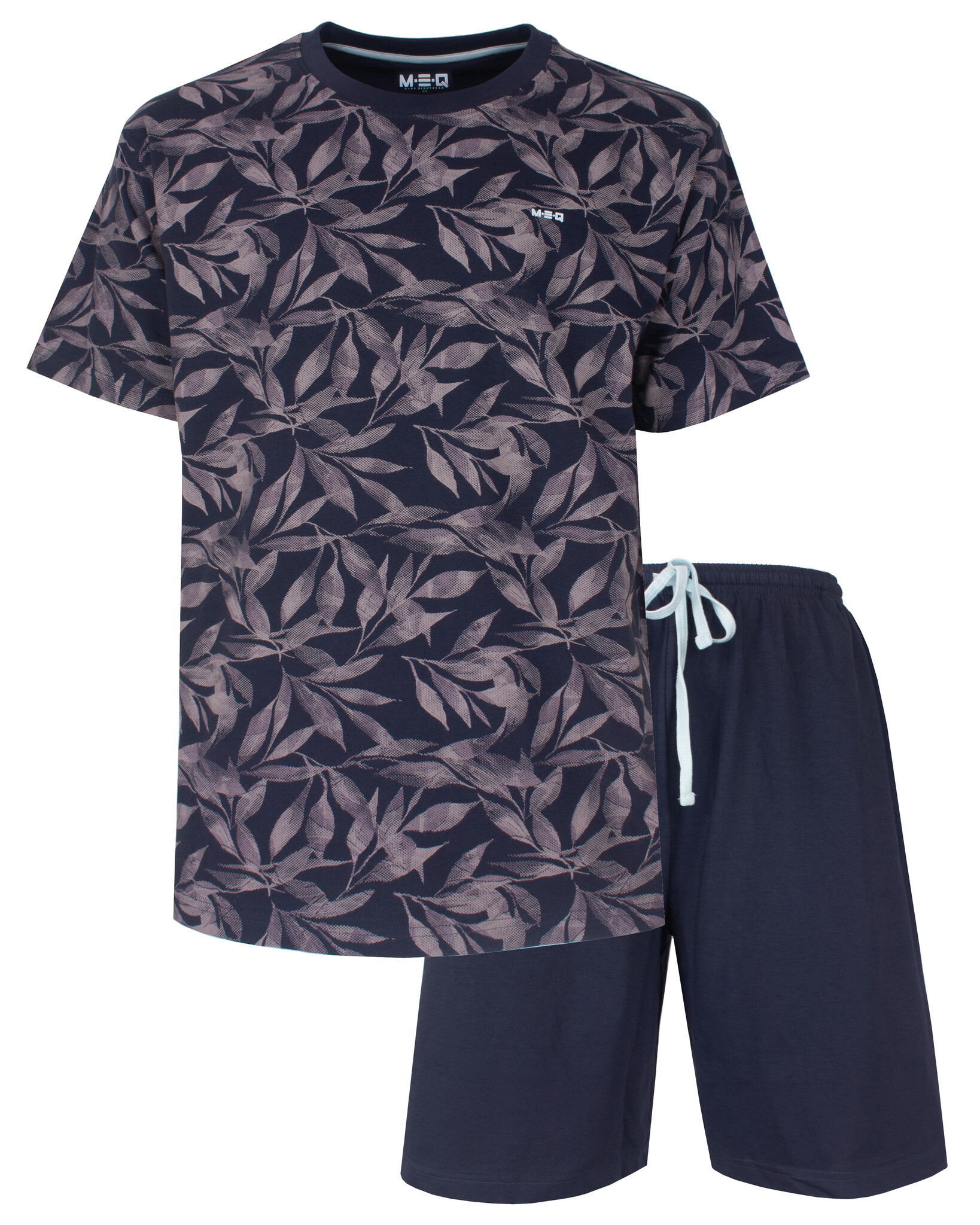 MEQ Heren Shortama Donker Blauw - Deze Heren Shortama Set, met stijlvol geprint dessin met bladeren, is vervaardigd uit 100% gekamd katoen in een comfortabele en rekbare jersey stof.