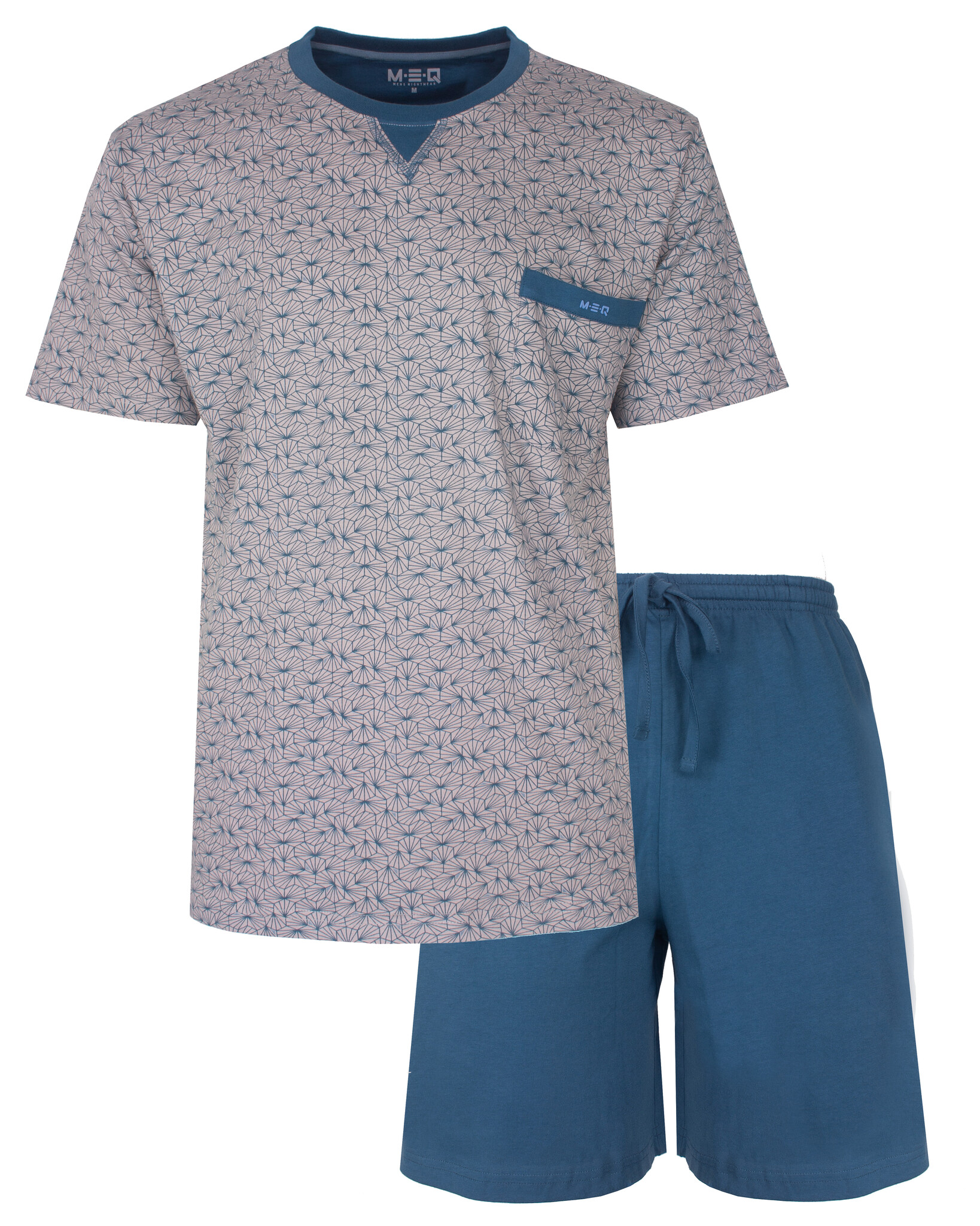 MEQ Heren Shortama Grijs - Deze Heren Shortama Set, met stijlvolle geprint dessin, is vervaardigd uit 100% gekamd katoen in een comfortabele en rekbare jersey stof.