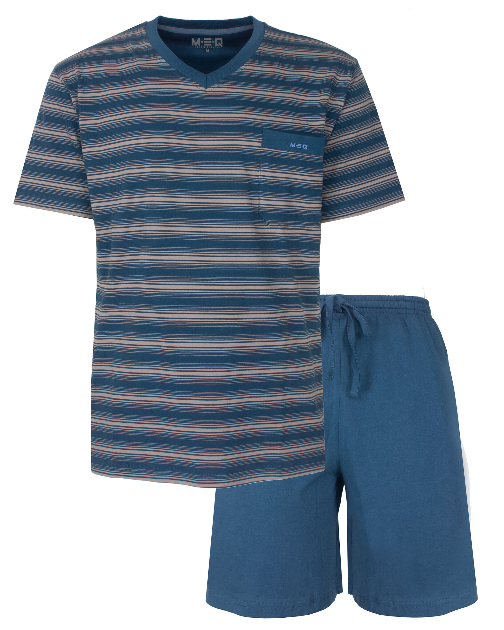 MEQ Heren Shortama Petrol Blauw - Deze Heren Shortama Set, met stijlvolle gestreept dessin (yarn dyed), is vervaardigd uit 100% gekamd katoen in een comfortabele en rekbare jersey stof.