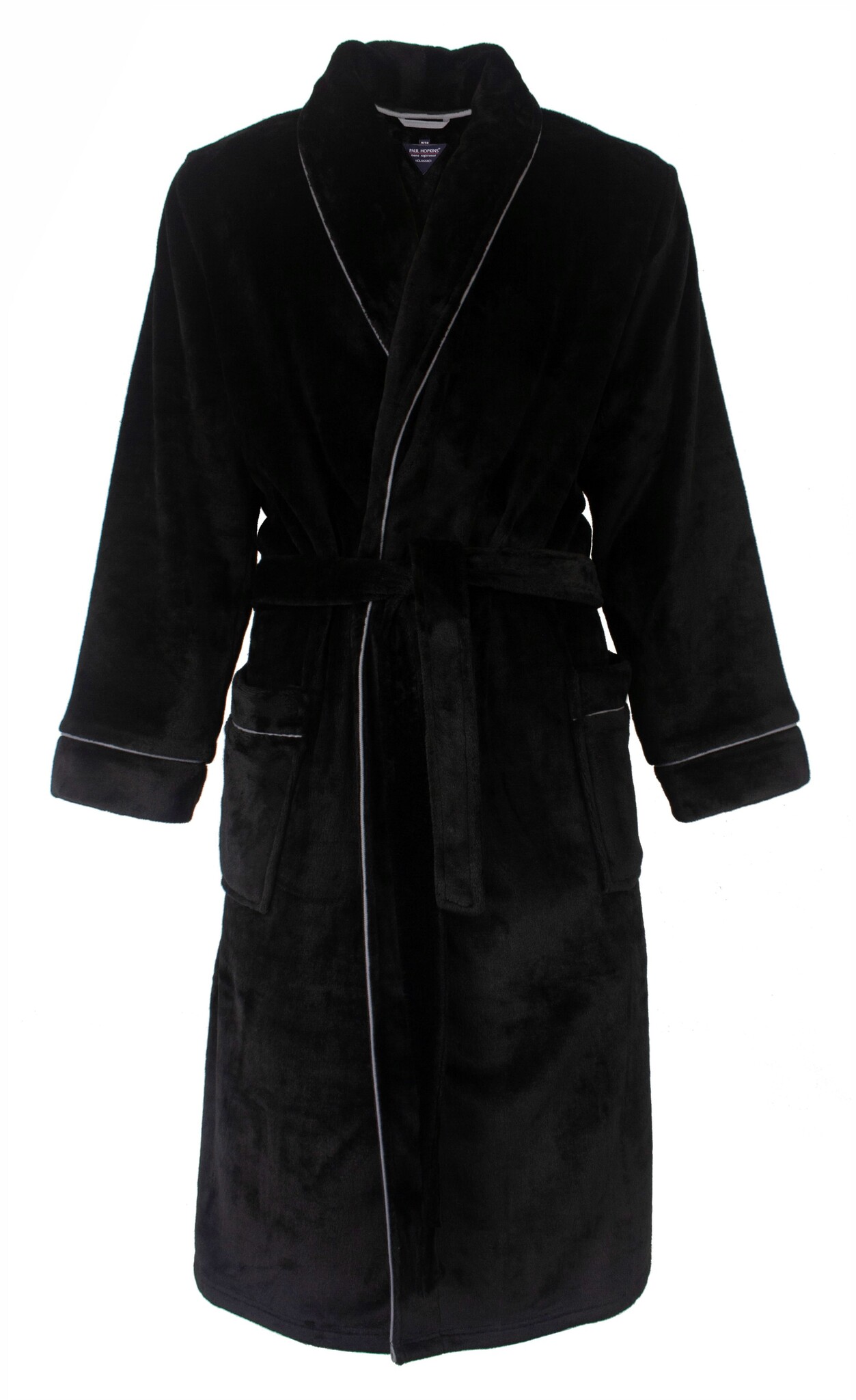 PHBRH25001A Paul Hopkins Heren Fleece Badjas Ochtendjas Zwart.