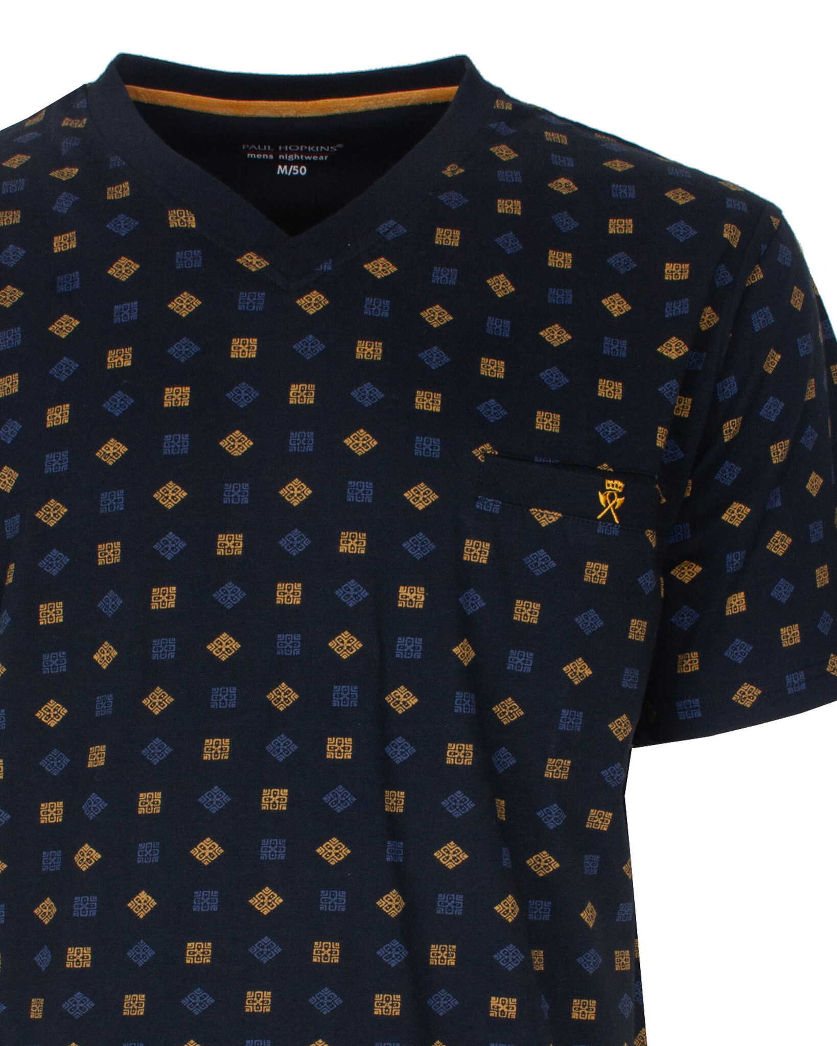 Paul Hopkins Heren Shortama - Deze shortama is vervaardigd uit 100% gekamd katoen in een comfortabele en rekbare jersey stof. De allover geprinte top is voorzien van een V-hals en heeft korte mouwen. Op de borst bevindt zich een paspel borstzakje met een klein geborduurd logo. De korte uni broek heeft zakken in de zijnaad en in de taille een aantrekkoord.