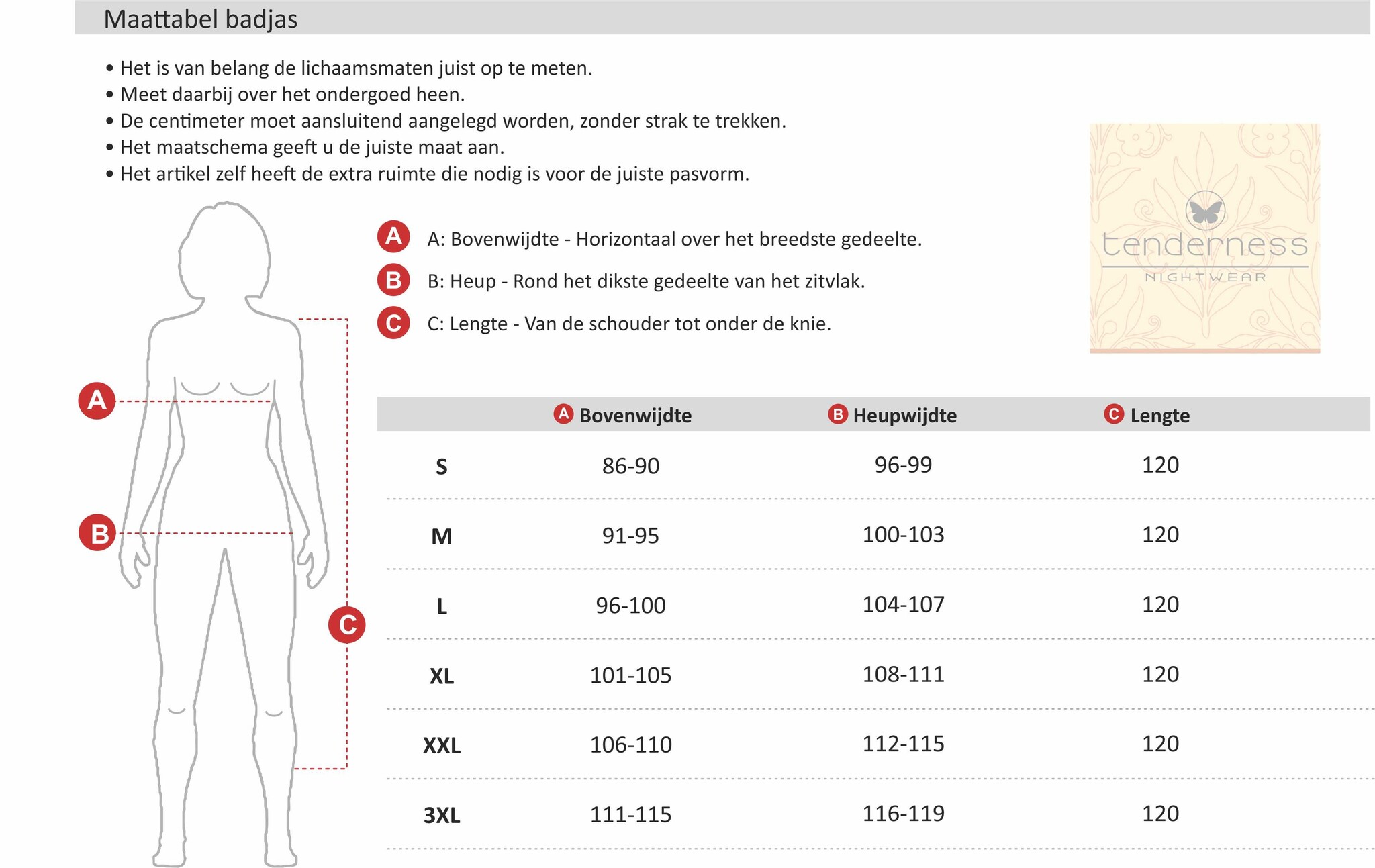 Over TendernessTenderness is een bekend dames nachtmode merk dat sinds 1988 gespecialiseerd is in het ontwerpen van zachte en romantische home- en sleepwear. Met een sterke focus op charme en comfort, bedient Tenderness vrouwen van alle leeftijden die waarde hechten aan een huiselijke sfeer. De collectie onderscheiden zich door een palet van zachte, aantrekkelijke kleuren en een uitgebalanceerde pasvorm, wat zorgt voor zowel elegantie als optimaal draagcomfort.