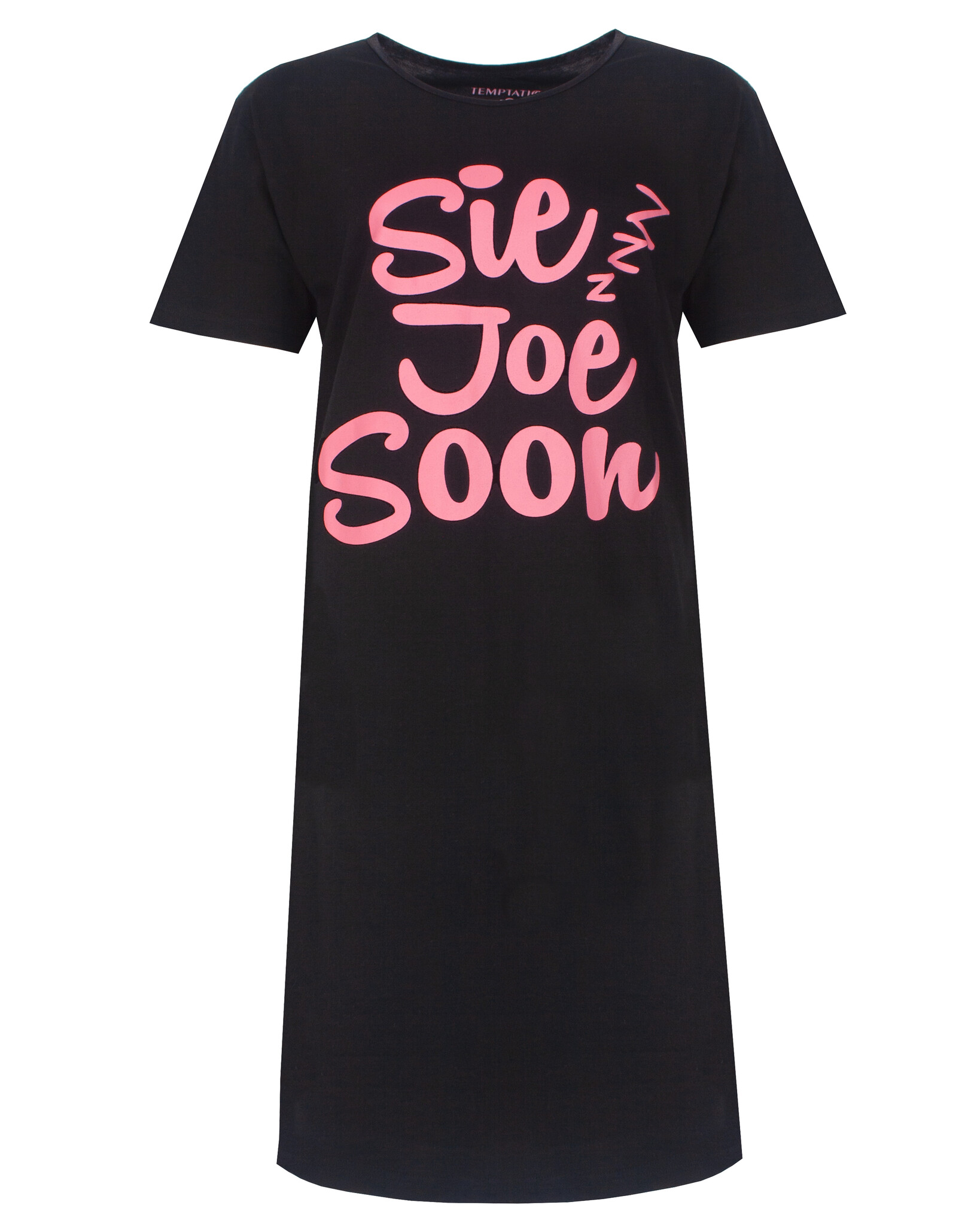 Temptation dames Big shirt - Dit bigshirt is vervaardigd uit 100% gekamd katoen in een comfortabele en rekbare jersey stof en voorzien van een grappige tekst print 'See you soon'. Het bigshirt heeft een ronde hals die is afgewerkt met een satijnen biesje en heeft korte mouwen.