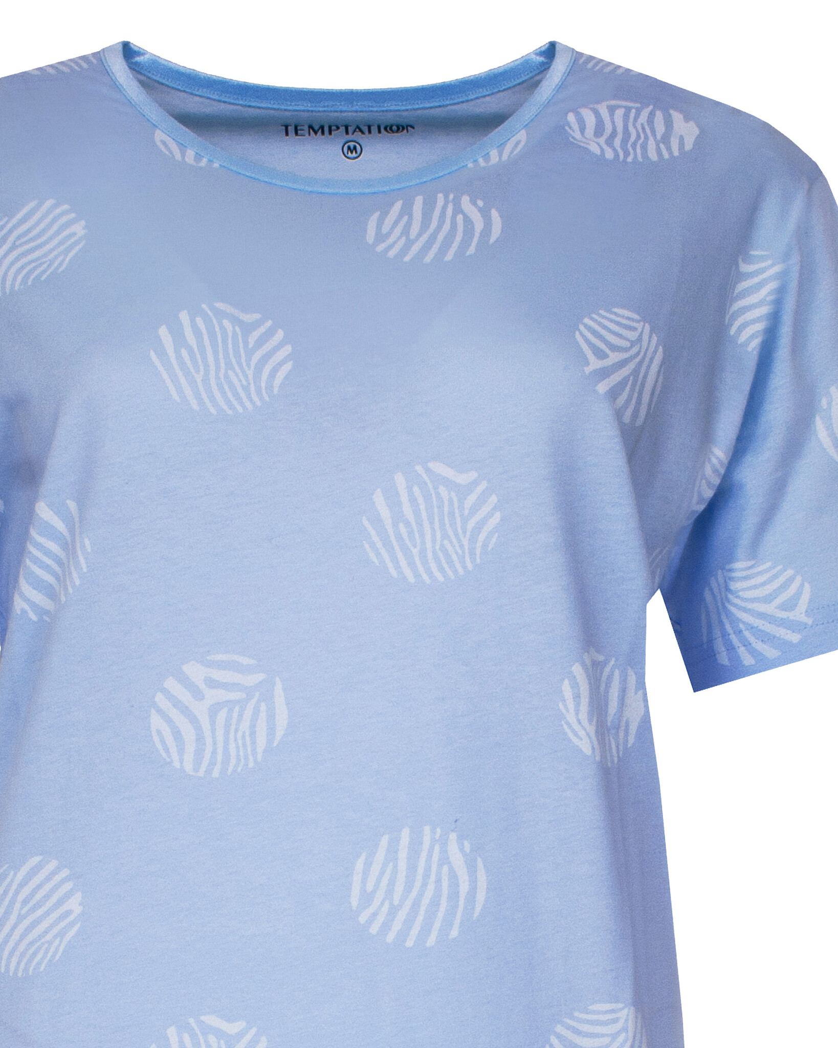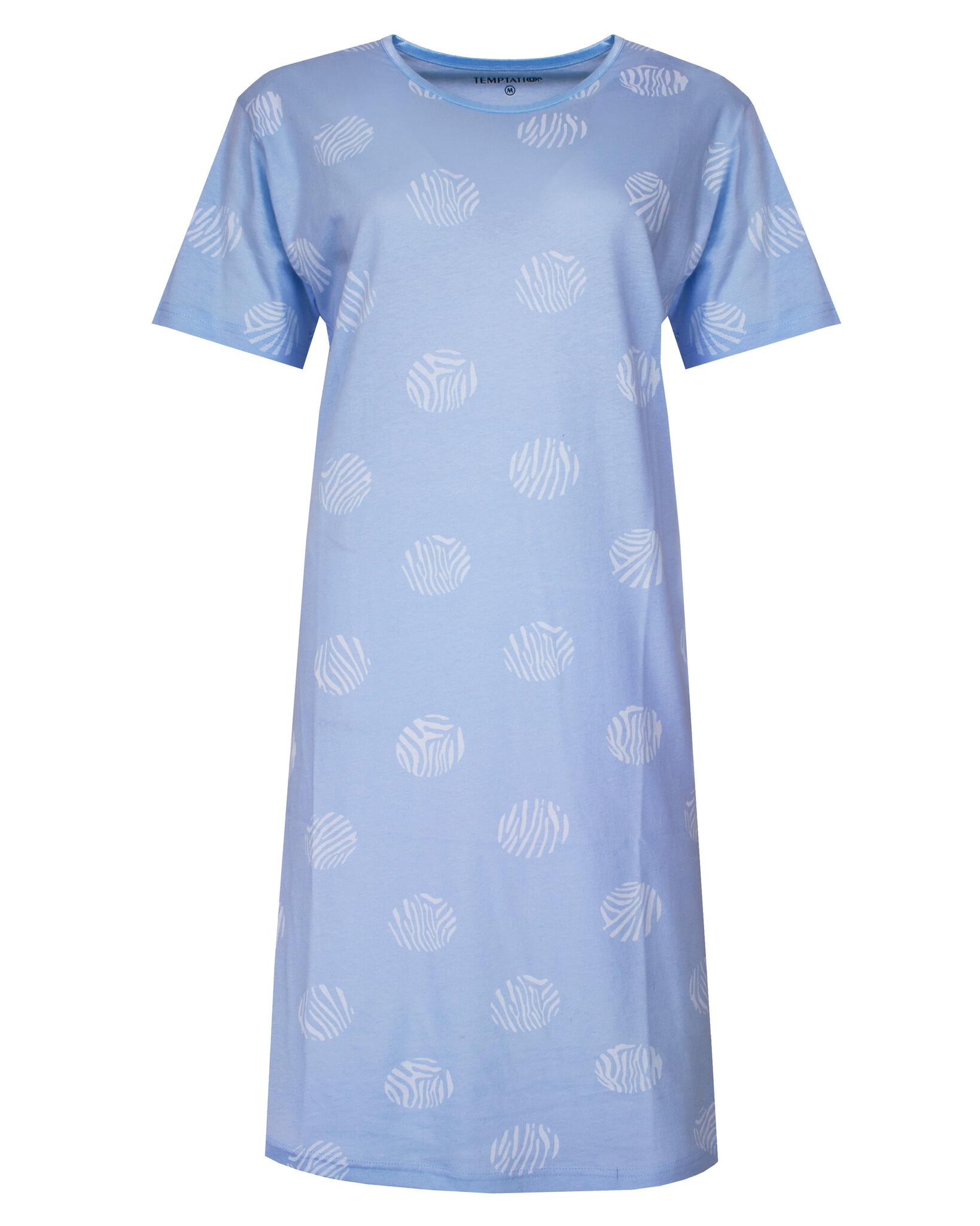 Temptation dames Big shirt - Dit bigshirt is vervaardigd uit 100% gekamd katoen in een comfortabele en rekbare jersey stof en voorzien van een allover dessin. Het bigshirt heeft een ronde hals die is afgewerkt met een satijnen biesje en heeft korte mouwen.