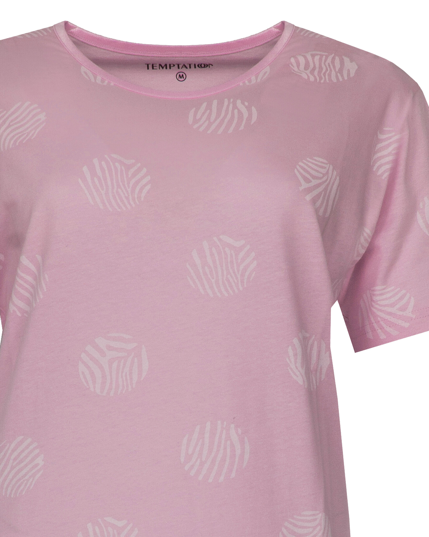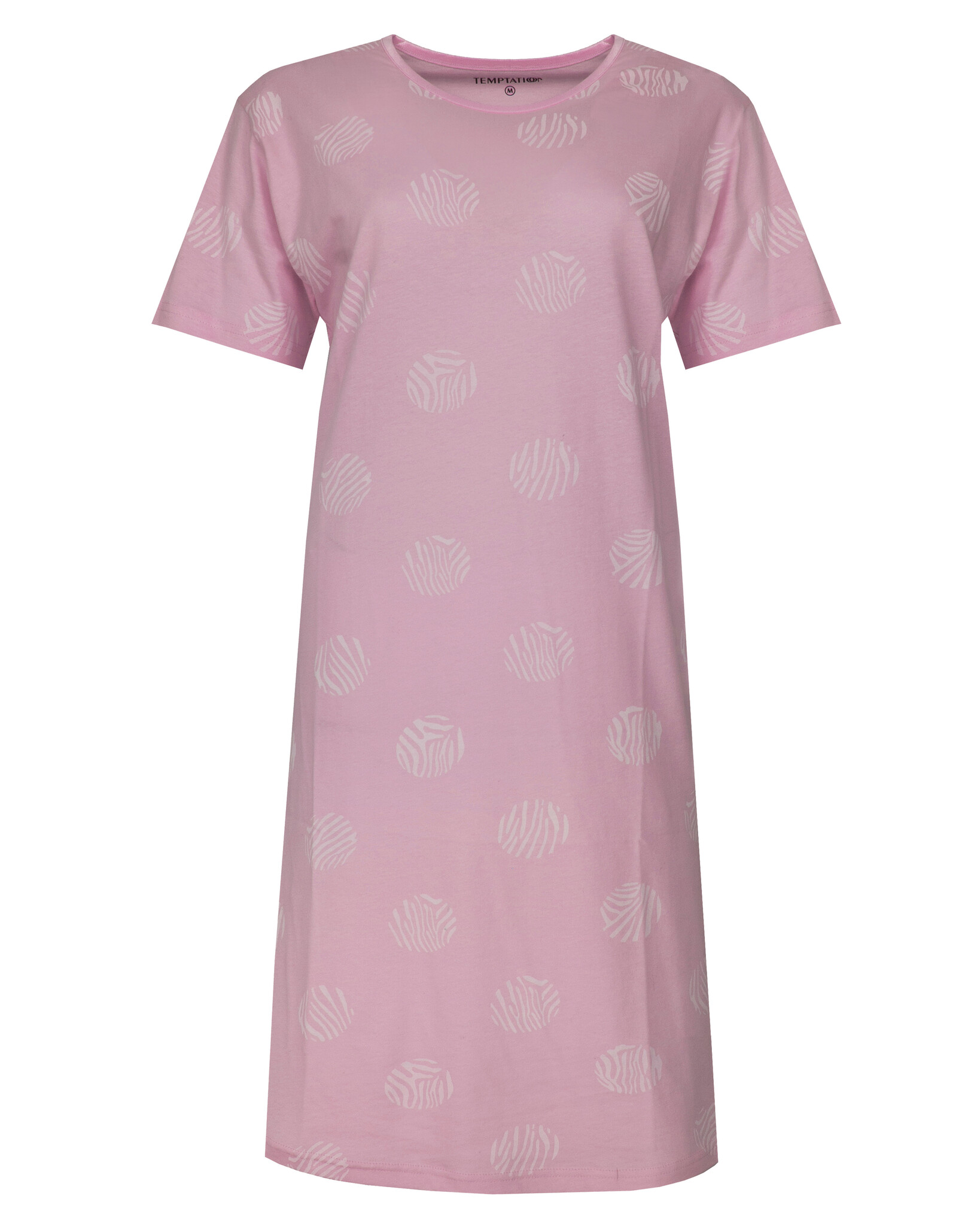 Temptation dames Big shirt - Dit bigshirt is vervaardigd uit 100% gekamd katoen in een comfortabele en rekbare jersey stof en voorzien van een allover dessin. Het bigshirt heeft een ronde hals die is afgewerkt met een satijnen biesje en heeft korte mouwen.